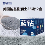 蓝钻猫砂膨润土猫砂钠基矿砂活性炭结团宠物猫咪厕所用品 蓝标无香25磅*2盒